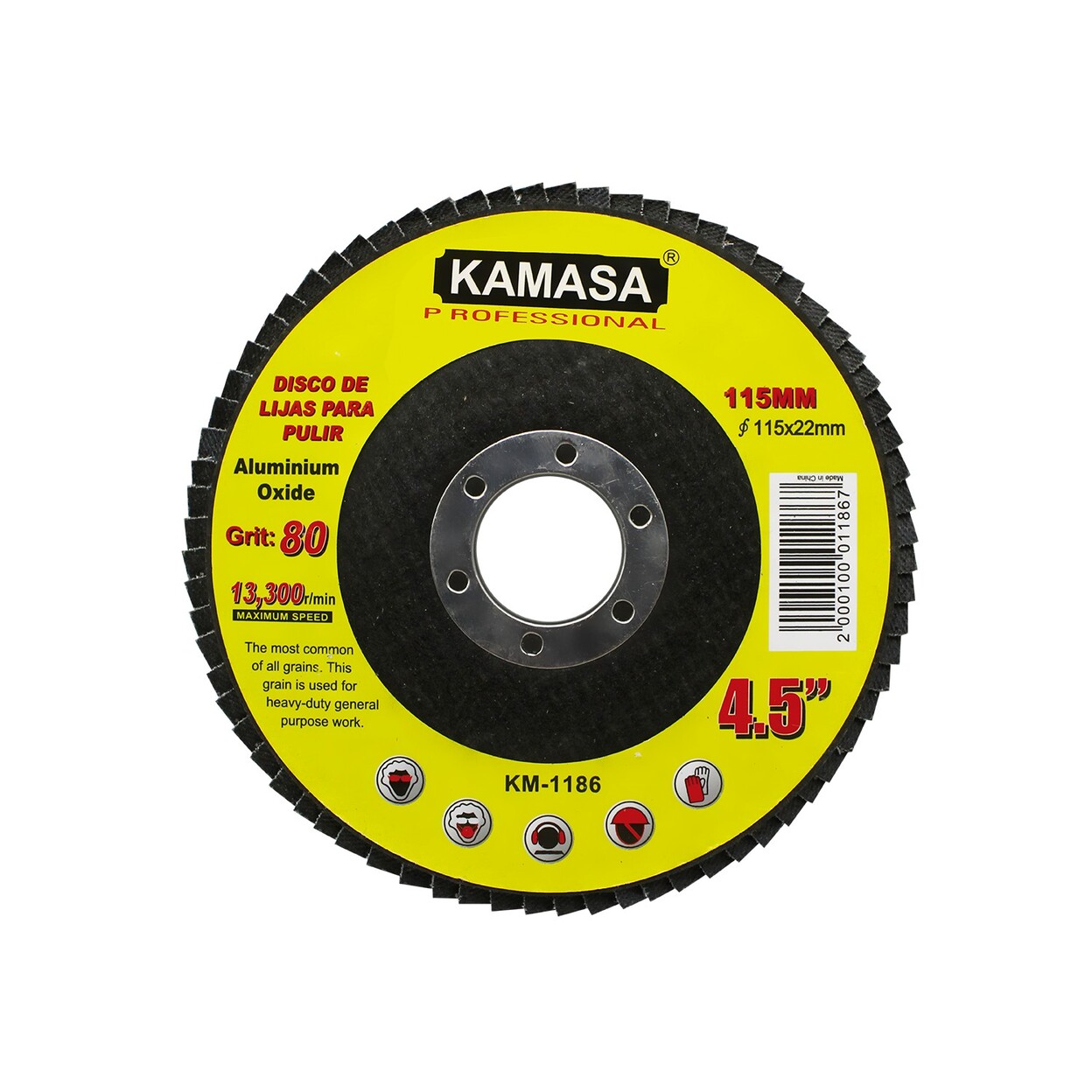 Disco flap abrasivo de 4.5 pulgadas (115 mm) con grano 80, diseñado para acabados finos, alisado de superficies y trabajos de preparación antes del pulido o pintura. Ideal para metales, madera y plásticos. Su diseño con aletas superpuestas garantiza una abrasión pareja y mayor duración. Compatible con esmeriladoras angulares estándar.