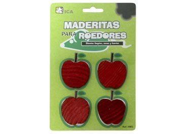 Maderitas para roedores forma de manzana (contiene 4 piezas).