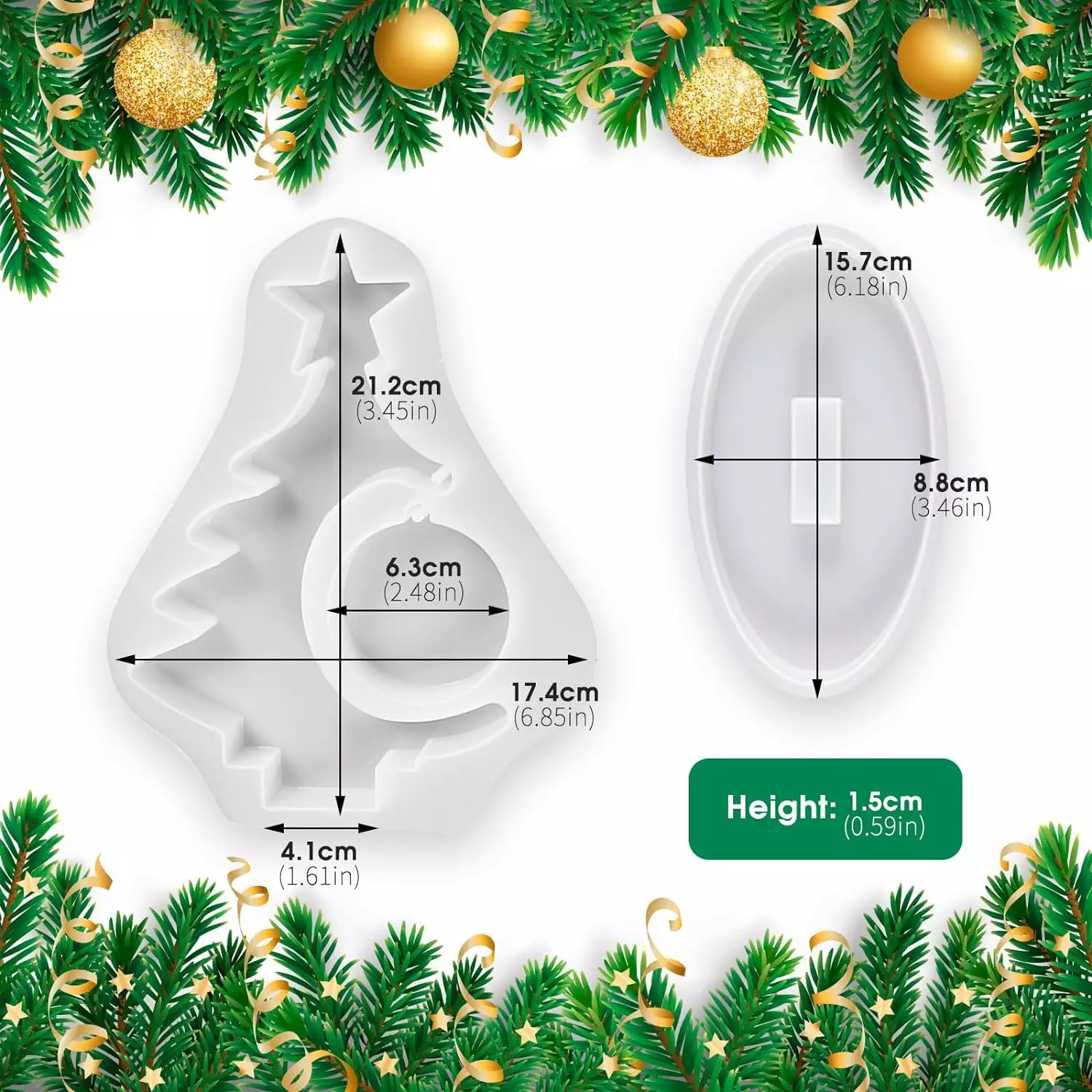 Molde árbol de navidad con foto personalizada en silicona suave para resinas fabricado con silicona profesional y absolutamente libre de imperfecciones.