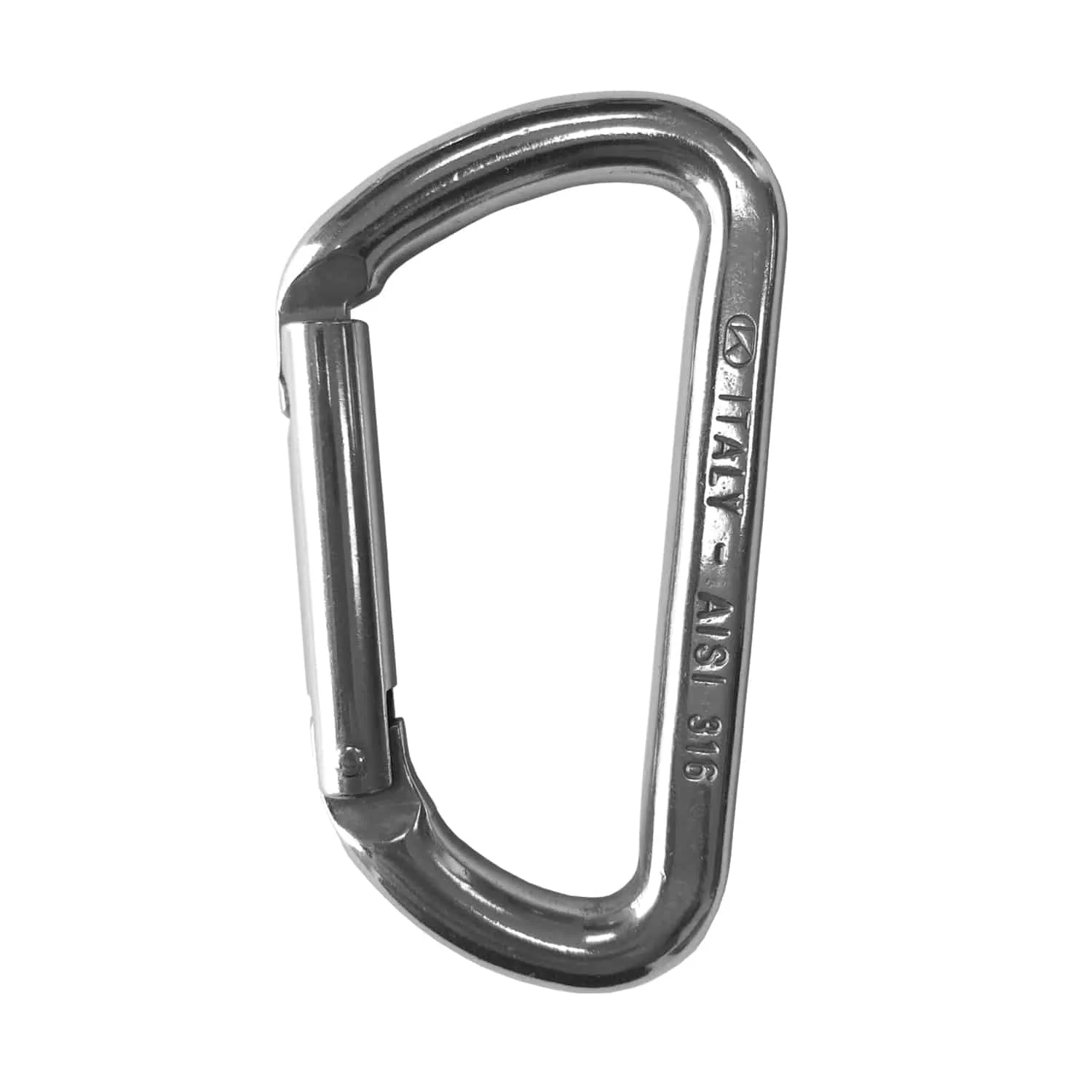 Mosquetón asimétrico de acero inoxidable AISI 316, acabado pulido brillante. Producto de alta calidad