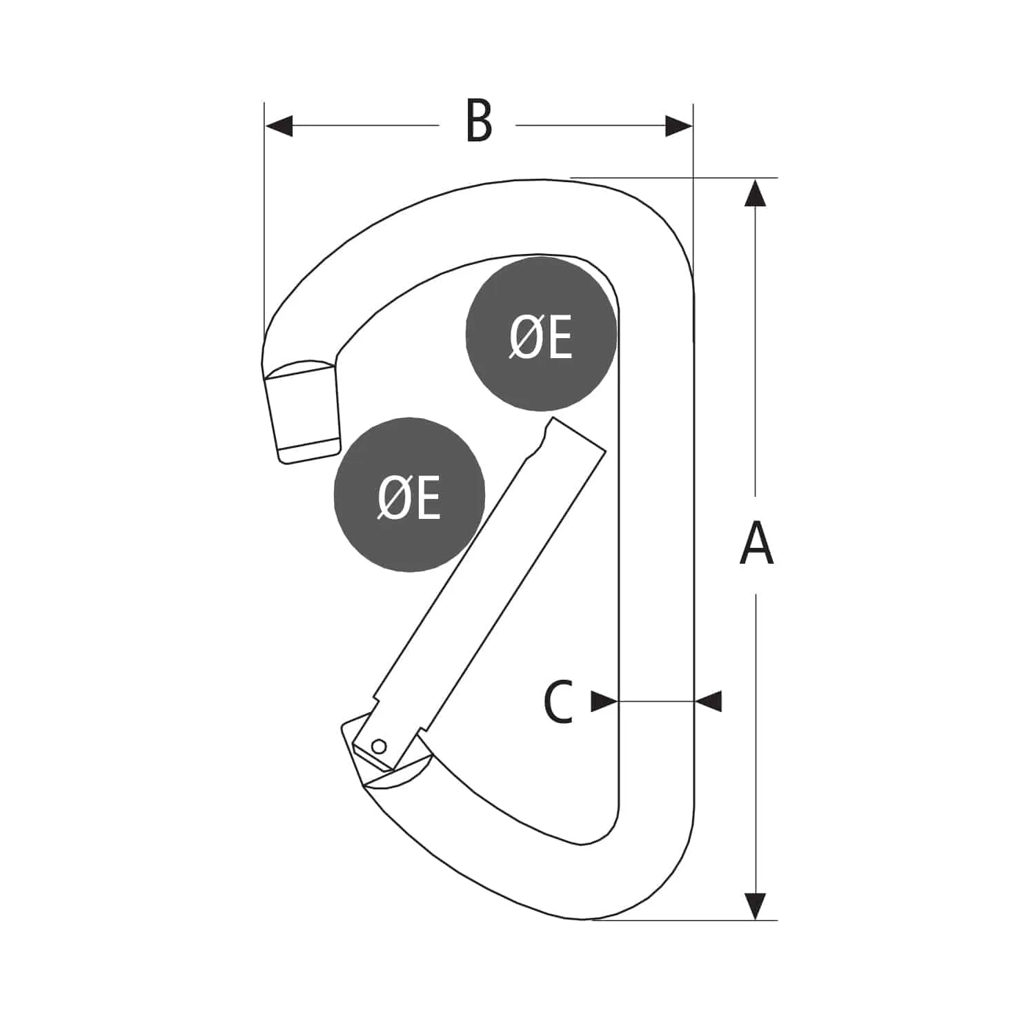El mosquetón asimétrico de acero inoxidable AISI 316 presenta las siguientes características: