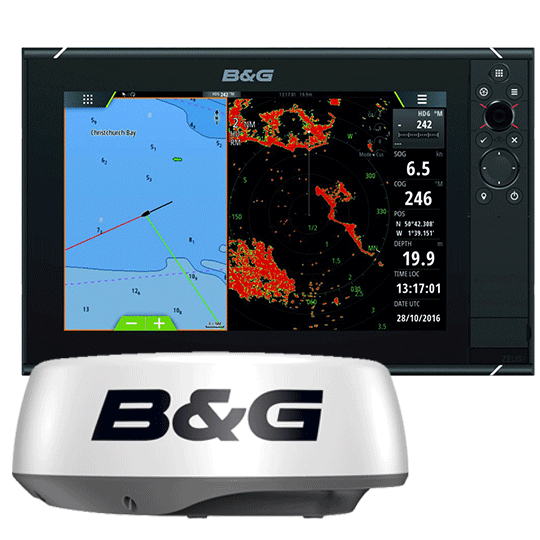 También se puede añadir opcionalmente una antena de radar compatible como la B&G Broadband 3G, 4G y HALO de B&G para tener visibilidad en zonas oscuras o de escasa visibilidad, y poder monitorizar los frentes meteorológicos.